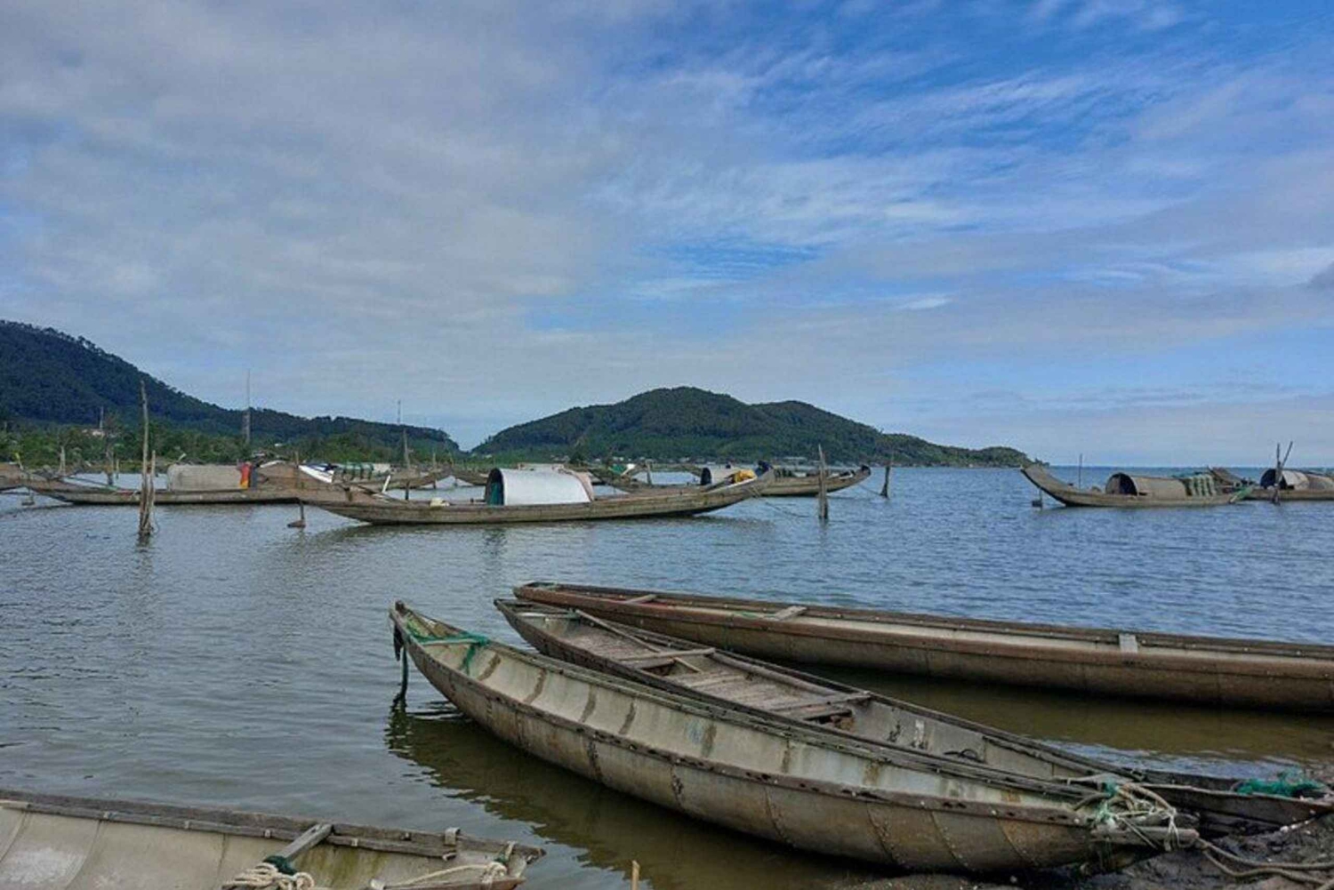 Explore os destaques da Passagem de Hai Van e a viagem de Hue a Hoi An, Da Nang (ou vice-versa, ou ida e volta) numa mota com um motorista experiente nesta incrível excursão privada de um dia inteiro. Quer queira viajar para norte ou para sul, esta viagem vai ser inesquecível, com paisagens incríveis e visitas às Montanhas de Mármore (ou Lady Buddha na península de Son Tra), Passagem Hai Van, Praia Lang Co, Cascata Suoi Mo (ou Água Nhi Ho) e Lagoa Tam Giang (ou Lagoa Lap An) e o verdadeiro interior do Vietname. Comece o dia com uma recolha conveniente no seu alojamento em Hoi An, Da Nang (ou Hue). Suba na parte de trás de uma moto e comece a sua aventura em direção às Montanhas de Mármore, um grupo de cinco montanhas de calcário no Vietname. De acordo com a lenda Cham, um dia um dragão voou para a praia de Non Nuoc e botou um ovo lá. Depois de muito tempo, o ovo chocou e uma linda garota saiu dele. A casca do ovo foi quebrada em 5 pedaços que se tornaram as cinco montanhas mágicas que vemos hoje. Em 1825, o imperador Minh Mang deu o nome de Montanhas de Mármore a este complexo montanhoso, que significa 'Ngu Hanh Son' em vietnamita. Cada montanha recebeu o nome de um dos cinco elementos da filosofia oriental: metal, água, fogo, madeira e terra. Esses nomes continuam iguais até hoje, e as Montanhas de Mármore viraram uma atração natural com muitos picos, cavernas e templos incríveis. Em seguida, vá até ao Passo Hai Van, reconhecido como uma das dez estradas costeiras mais bonitas do mundo. O desfiladeiro não só está ligado a vários eventos históricos, mas também é um lugar incrível para muitos viajantes, graças à sua beleza espetacular e artística que encanta a todos. A perigosa curva da morte, junto com as estradas em ziguezague, vai criar uma caminhada desafiadora para os mochileiros e trazer experiências incrivelmente únicas. Depois, vá até ao Portão Hai Van, um monumento nacional, e o ponto mais alto da passagem. Continue até à Cascata de Suoi Mo, uma nascente em Hue que flui ao longo das florestas frescas e primitivas do sudeste. Depois, vá para a praia de Lang Co, que faz parte da baía de Lang Co, uma das baías mais lindas do mundo. Desfrute de um almoço com vista para a praia e frutos do mar frescos. Depois do almoço na praia de Lang Co, seguimos para Hue, paramos na Lagoa Tam Giang, a maior lagoa do sudeste asiático, e vemos como as famílias de pescadores vivem e trabalham. Finalmente, de moto por uma estrada de aldeia com campos de arroz, chegamos à cidade de Hue (ou Hoi An). Vamos a qualquer lugar que você quiser em Hue/DaNang/Hoi An.Includes