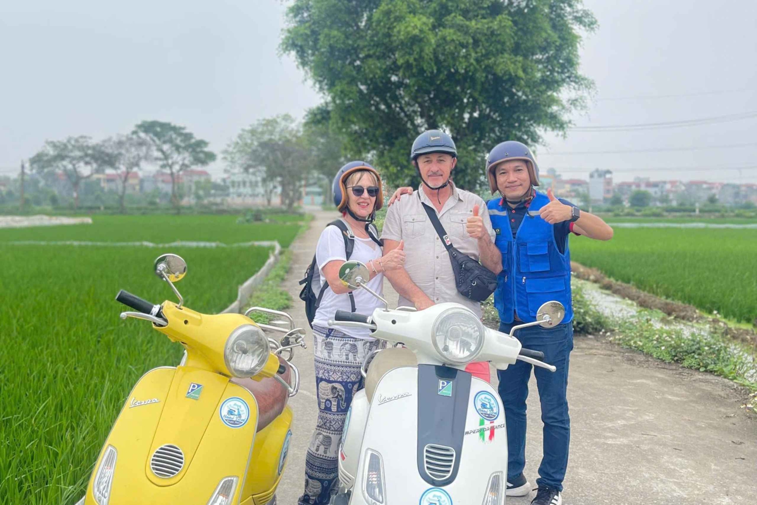 Explore os arredores de Hanói numa emocionante excursão de Vespa. Visite a antiga Cidadela de Co Loa, atravesse a Ponte Long Bien, explore a área rural e saboreie um almoço vietnamita autêntico.