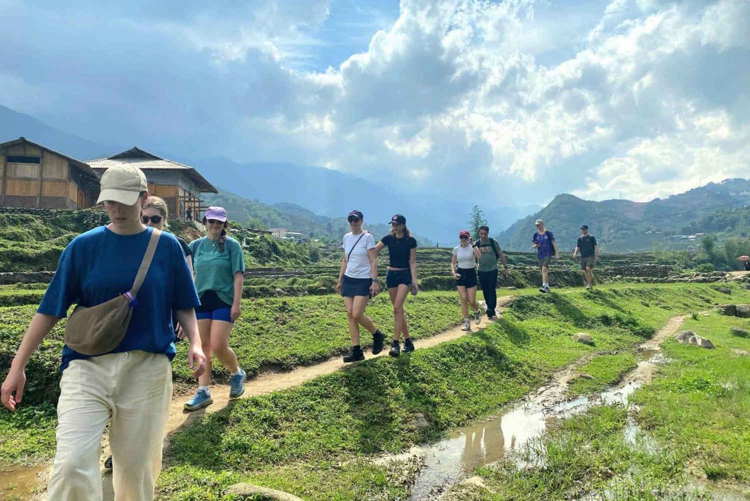 Aproveite o serviço de busca em seu hotel em Sa Pa e comece sua caminhada de 10 quilômetros pelo lindo vale. Admire os terraços de arroz escondidos atrás da névoa da manhã enquanto segue uma pequena trilha para cruzar o Rio Muong Hoa. Continue passando por campos de arroz bem cuidados e em terraços no seu caminho para a vila de Lao Chai, onde vive um grupo étnico local Black Hmong. Caminhe até a vila de Ta Van Giay e caminhe ao longo da rota do Rio Muong Hoa para cruzar uma pequena ponte suspensa a cerca de 2 quilômetros do assentamento. Descubra uma coleção fascinante de antigas esculturas em pedra que retratam imagens de homens, casas de palafitas e diferentes padrões decorativos. Desfrute do almoço em uma casa local na vila antes de caminhar por uma floresta de bambu e chegar à vila da minoria étnica Red Dao de Giang Ta Chai. Desfrute de um breve descanso em uma cachoeira próxima antes de subir a colina até a estrada principal, onde o motorista estará esperando por você para levá-lo de volta a SaPa.Includes