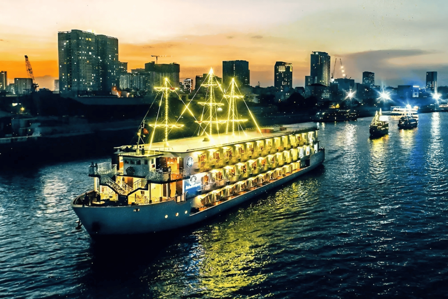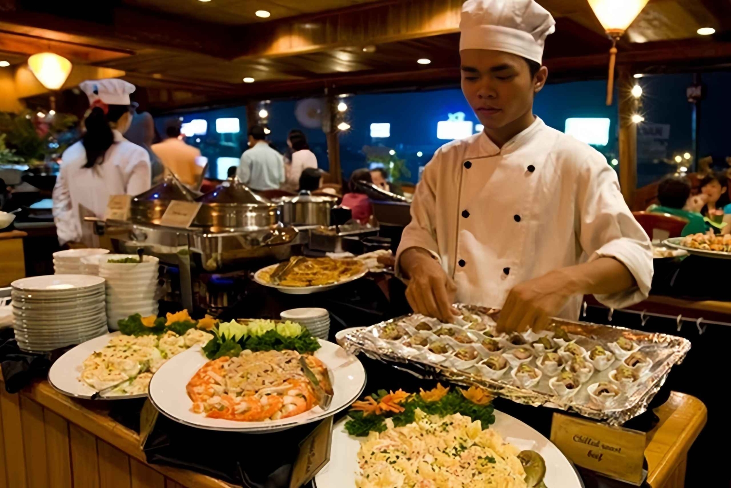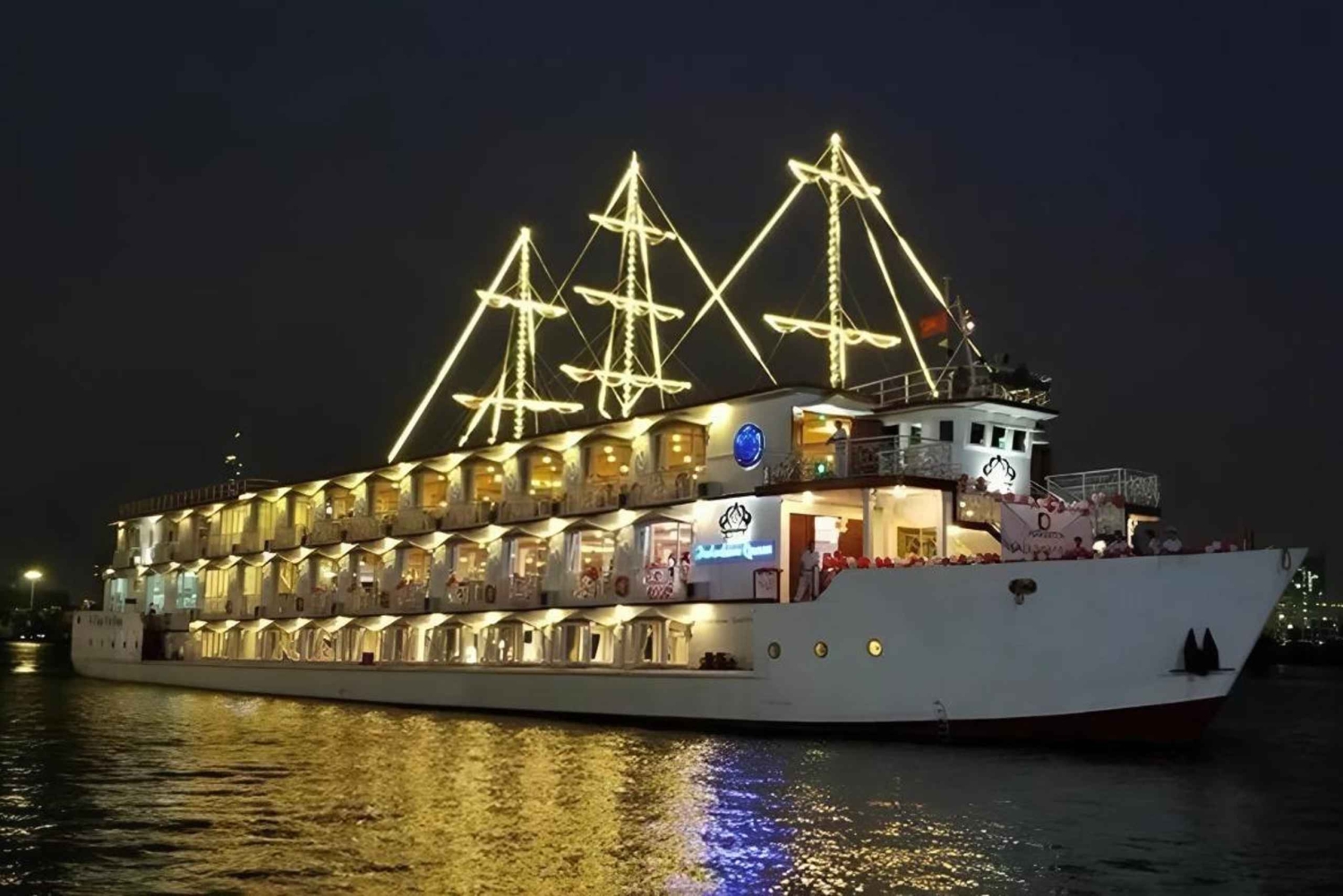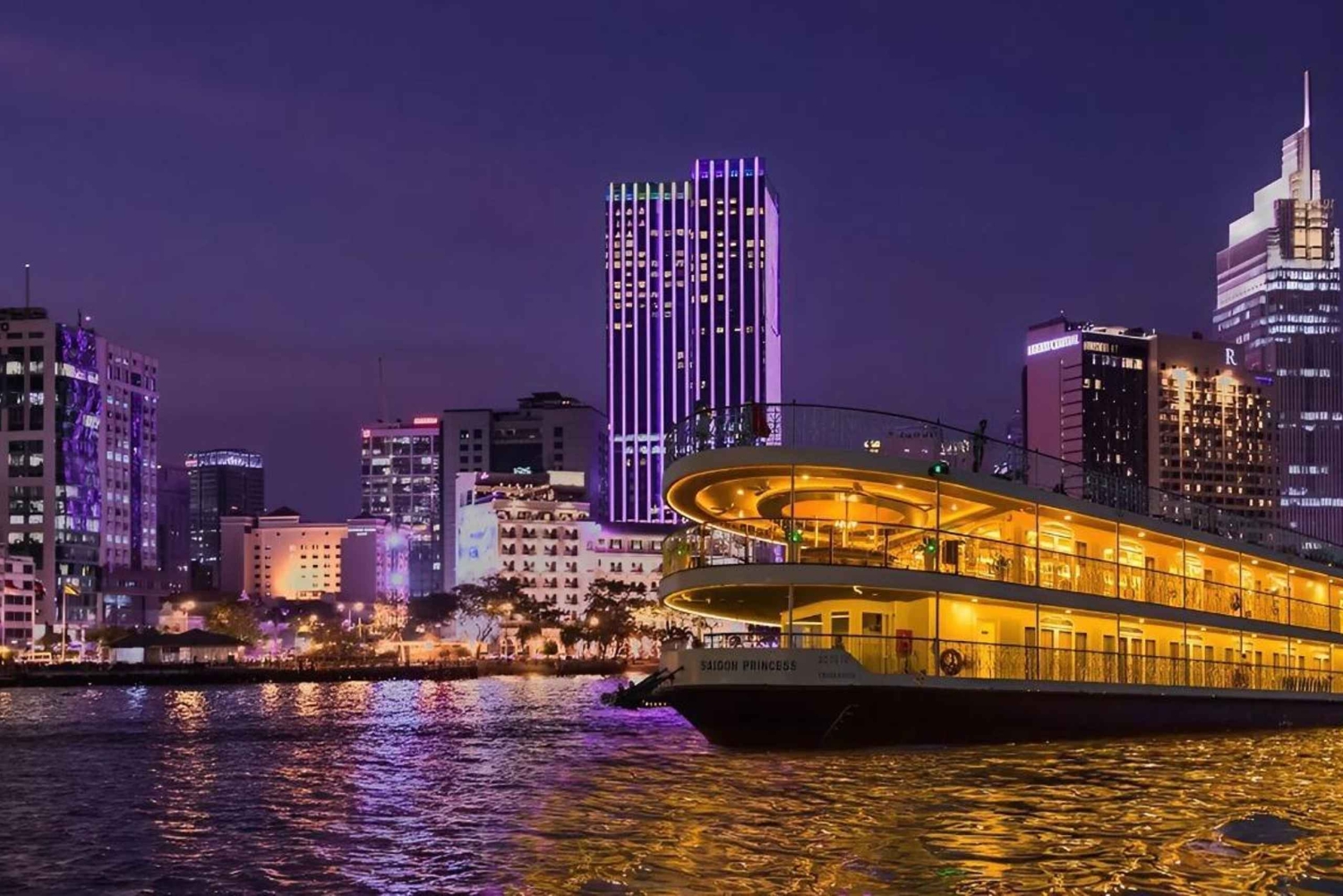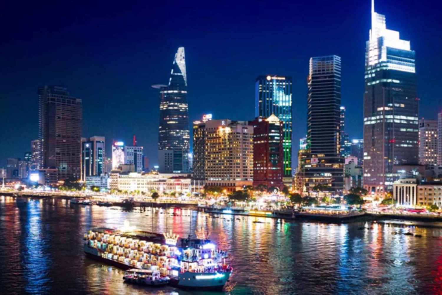 В начале этой поездки наш гид встретит вас у вашего отеля, а затем отвезет в порт, где вы сядете на круиз. По дороге в порт вы сможете полюбоваться оживленной картиной Хошимина в час, когда люди возвращаются с работы домой. Затем, когда вы прибудете в порт, у вас будет возможность запечатлеть прекрасные моменты на фоне заката рядом с лодками. Затем ваш гид сопроводит вас на лодку. Когда начнется круиз, вы будете очарованы мерцающими огнями Хошимина, красиво отражающимися на реке Сайгон. Насладитесь тщательно приготовленным ужином, погрузившись в оживленную, но спокойную атмосферу — это поистине волшебное впечатление, особенно для пар. Почувствуйте легкий ветерок и услышьте успокаивающий шум волн, создающий незабываемые моменты романтики. Пусть мягкая мелодичная музыка задаст тон уютному, интимному вечеру, идеальному для молодоженов или тех, кто ищет особенный вечер. Насладитесь изысканными блюдами местной и международной кухни, скользя по реке и любуясь ослепительным горизонтом и оживленным духом города с уникальной точки зрения. Это восхитительное путешествие обещает воспоминания, которые вы будете хранить долго после окончания круиза. В конце поездки наш гид отвезет вас обратно в порт.Includes