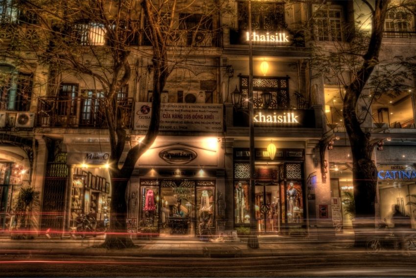 Khaisilk is a high end brand that is continuing to make a bigger name for itself with readymade and tailor made silk products with modern and traditional designs. At this shop location on Dong Khoi, you will find elegant clothes and accessories for both men and women. Scarves, ties and 'washed silk' suits are their specialties. The huge store on Dong Khoi has three floors packed full of fashion for every part of your life. The top floor sells household linens and sleepwear. The shopping ambiance is fully completed by a small fishpond near the back.