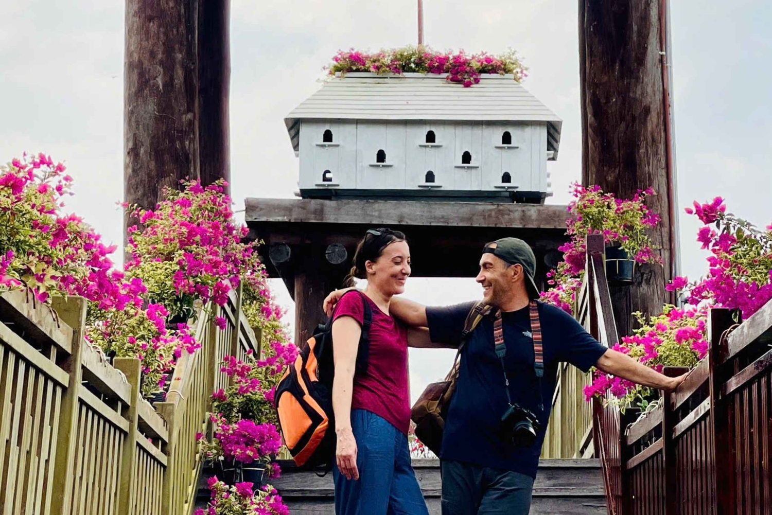 - Varför du kommer att älska vår turné Upplev Mekongdeltats själ genom en livlig blandning av cykling, båtliv och autentiska lokala möten. Paddla tyst bland eleganta storkar, kungsfiskare och sällsynta tropiska fåglar, och kliv sedan upp i utsiktstorn för en vidsträckt utsikt över orörda gröna landskap. Dessa stunder erbjuder en sällsynt inblick i Vietnams rika biologiska mångfald och lugna våtmarksekosystem. Med Vietnams ekonomi i utveckling når den flytande marknaden nu sin topp mellan kl. 07.00 och 09.00 – vår start kl. 06.45 säkerställer att du anländer i tid. Till skillnad från turer med långa tidiga transfers sparar vår närliggande avgångsplats tid och håller saker och ting avslappnade. Allt ingår: mat, dryck, transfer, inträdesavgifter och till och med regnrockar, så det finns inga överraskningskostnader. Vårt guideteam består av livliga Gen Z-lokaler från toppuniversitet, som ger ny energi och djup förståelse för landets kultur, historia, politik, filosofi, ekonomi och vardagsliv.