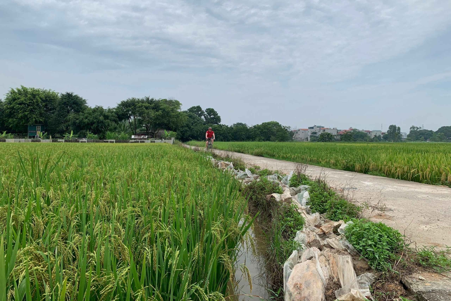- Cykla genom den fridfulla landsbygden i Hanoi utan mycket trafik