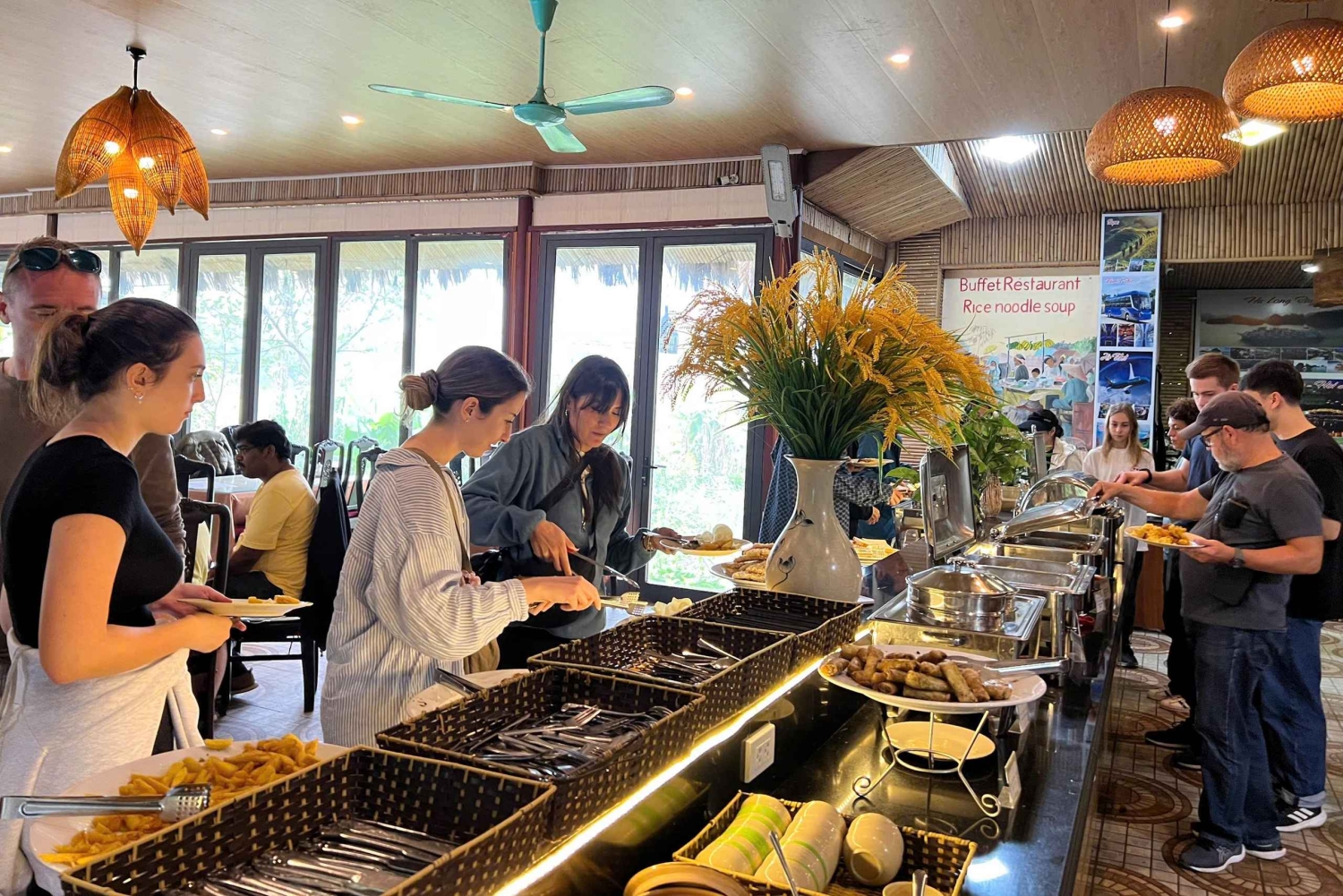 Börja din resa med en bekväm upphämtning från ditt hotell i Ninh Binh. Börja på Trang An, en UNESCO-världsarvsplats, och njut av en lugn båttur genom kalkstensgrottor, gröna dalar och höga karstberg. Fortsätt till Hoa Lu Ancient Capital, där du kommer att gå genom fridfulla tempelgårdar och upptäcka historien om Vietnams första kungliga dynasti. Din resplan beror sedan på vilket alternativ du väljer: • 4-punktsalternativ: Besök Hoa Lu, Vietnams antika huvudstad, utforska Bai Dinh Pagoda och fortsätt till Mua Cave innan du njuter av en naturskön båttur i Trang An. • 3-punktsalternativ: Besök Hoa Lu Ancient Capital, kliv upp i Mua Cave för panoramavyer och njut sedan av en naturskön åktur med båt i Trang An. Avsluta dagen med en givande vandring till Mua-grottans panoramautsikt, känd för sin vidsträckta utsikt över berg och risfält. Med små grupper, lunch inkluderad och smidig transport erbjuder den här turen en bekväm, komplett och minnesvärd Ninh Binh-upplevelse.Includes
