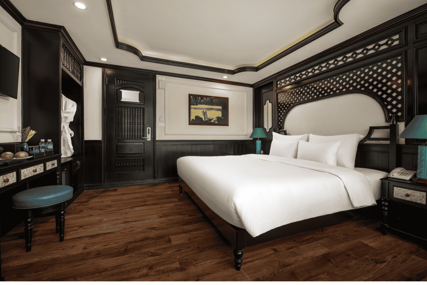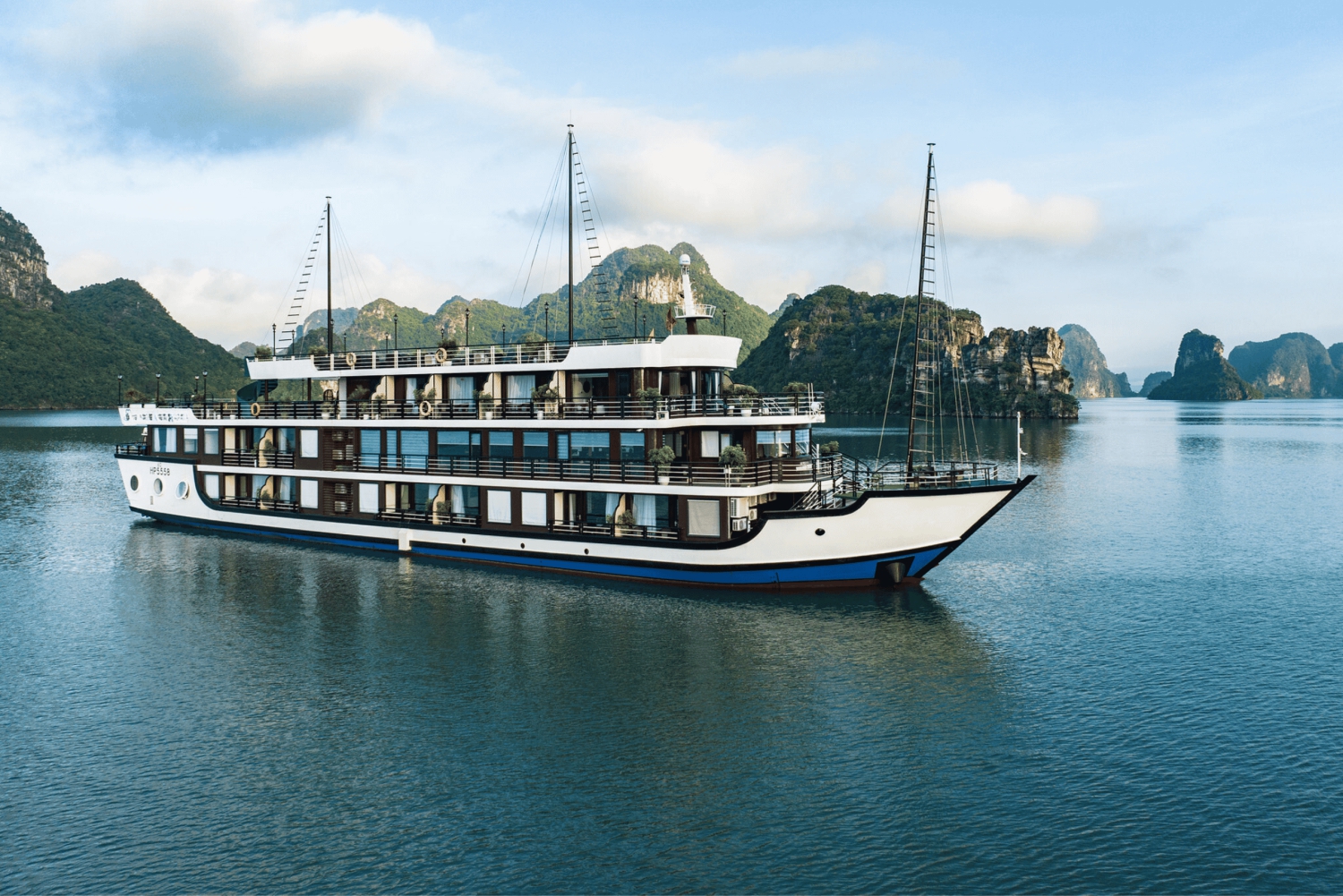 - Vi erbjuder flera alternativ för nybyggda 5-stjärniga kryssningar med stålskrov för denna resplan. Kryssningen kommer att ordnas utifrån tillgänglighet vid bokningstillfället. Avlämning i Ninh Binh istället för Hanoi är tillgängligt på begäran via e-post. Vänligen informera oss om det finns några särskilda önskemål om mat, såsom vegetarisk mat, matallergier etc., så att vi kan ordna detta på bästa sätt. Internetsignalen i bukten är svag, så var vänlig och slutför alla viktiga uppgifter innan du går ombord på fartyget. Barnpriser gäller, förutsatt att de inte upptar en plats. Schemat och menyn kan ändras (beroende på väder, lokala myndigheters bestämmelser, trafik etc.). Om det är fullt på det datum du bokat kommer vi att försöka ordna något och kontakta dig, och det kan tillkomma en extra avgift för uppgradering. Alla aktiviteter är valfria.
