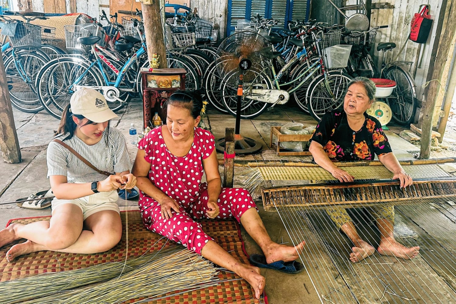 Njut av en resa till Ben Tre, en charmig liten stad i Mekongdeltat i Vietnam. Åk på en båttur längs Mekongfloden för att besöka en tegelbruk. Upplev en unik möjlighet att bevittna den traditionella tegelprocessen, som har tagit ett steg tillbaka i tiden när du utforskar en region där traditionerna har varit oförändrade i århundraden. Börja ditt äventyr på en familjeägd kokosnötodling, där du kommer att upptäcka den ödmjuka kokosnötens fascinerande resa – från skörd till handgjorda produkter. Se skickliga hantverkare förvandla kokosnötter till vardagsnödvändigheter och prova på att väva sovmattor tillsammans med lokalbefolkningen, och få en inblick i detta älskade hantverk. Hoppa sedan på en cykel och trampa genom charmiga byar och natursköna landskap, och njut av de autentiska sevärdheterna och ljuden på landsbygden i Vietnam. Längs vägen gör vänliga leenden och varma hälsningar från byborna varje sväng till en fröjd. Vill du inte cykla? Välj en tuk-tuk-tur istället och njut av samma uppslukande resa i lugn takt. Njut av en hemlagad lunch i ett välkomnande lokalt hus, där du kan njuta av traditionella vietnamesiska rätter tillagade med färska, säsongsbetonade ingredienser direkt från regionen. Det här är mer än en måltid – det är en kulinarisk upplevelse och en chans att få kontakt med dina värdar. Avsluta dagen med en lugn åktur med båt längs de smala kokosnötskanalerna. Glid genom fridfulla vattenvägar inramade av frodiga, smaragdgröna palmer och låt lugnet i Mekongdeltat svepa över dig – ett perfekt slut på en dag fylld med kultur, kontakt och upptäckter.Includes