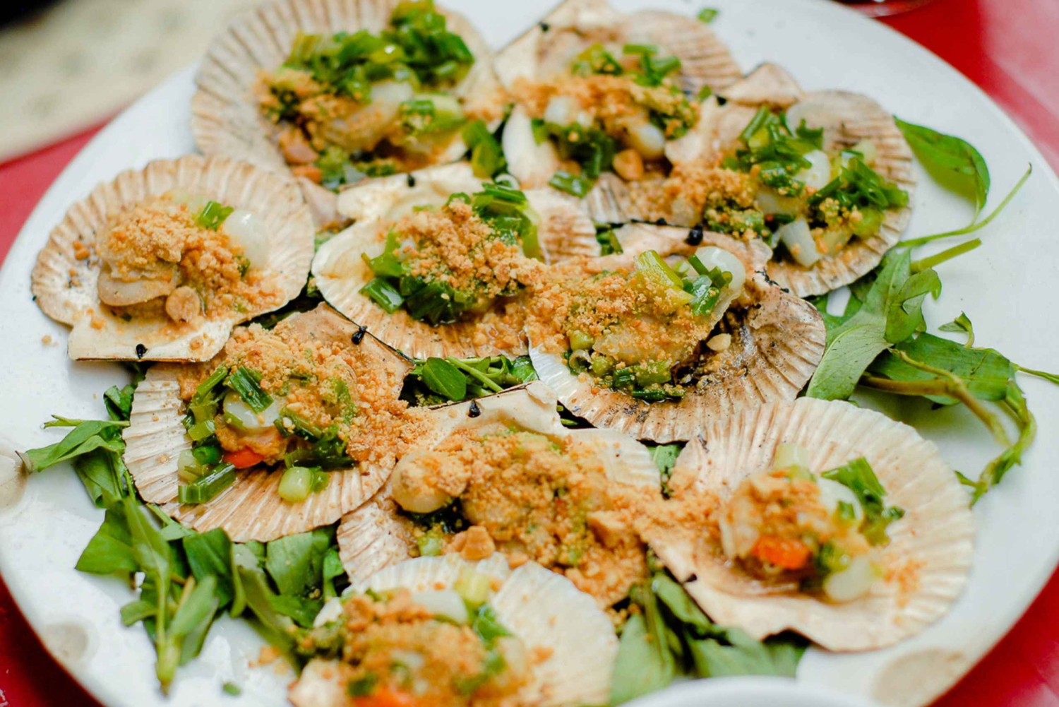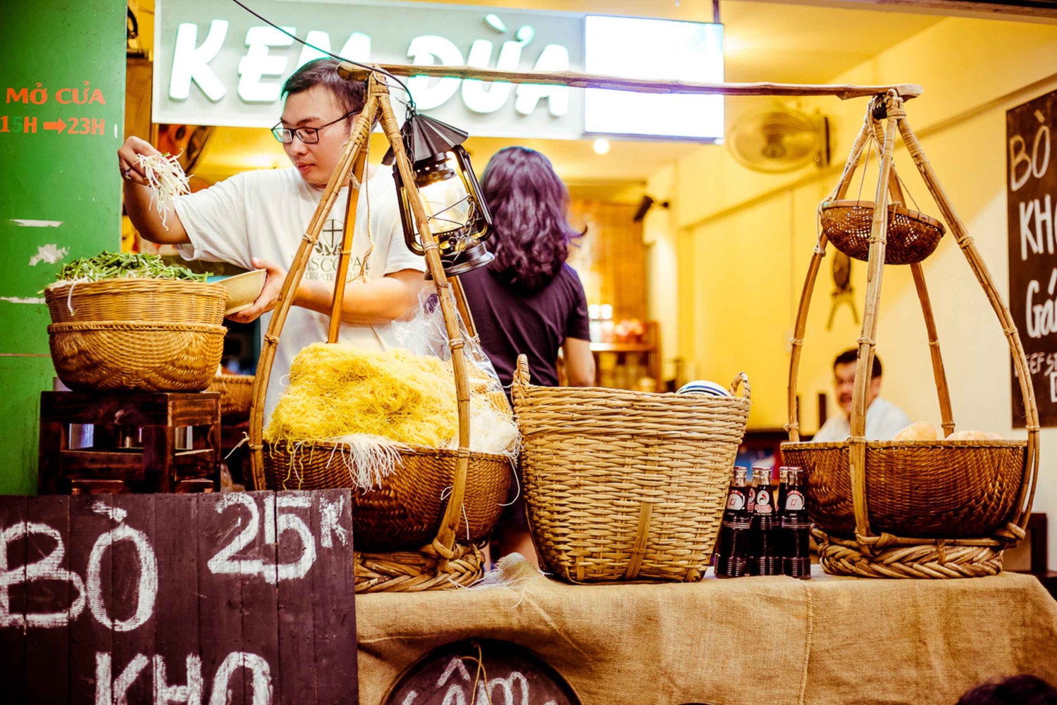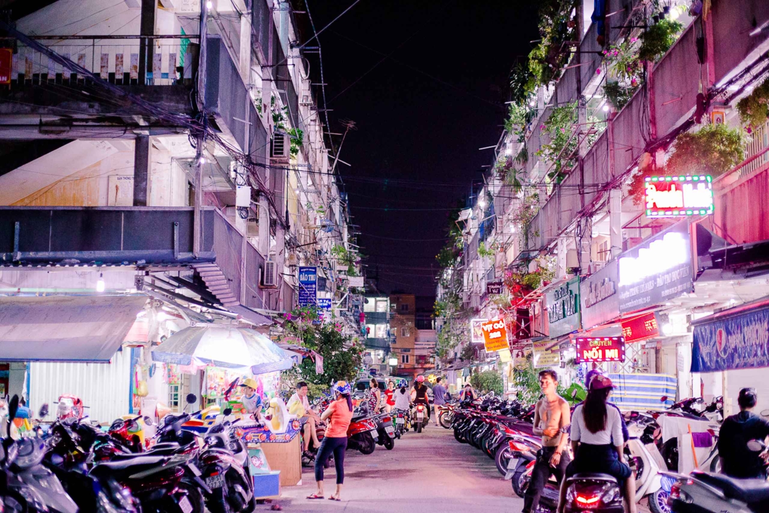 Ät dig igenom Ho Chi Minh City - tidigare Saigon - och smaka på den bästa gatumaten på kvällen. Möt dina engelsktalande guider på kvällen och klättra upp på baksidan av en cykel för att fördjupa dig i den galna trafiken. Anslut dig till tusentals andra motorcyklar när du kör på gatorna och din förare tar dig genom anmärkningsvärda stadsdelar, inklusive distrikt 3 där lokalbefolkningen bor. Stanna till och njut av några 'Bánh Xèo' och 'Bánh Khọt' (södra och centrala rispannkakor) och lär dig hur de görs av en kock med över 20 års erfarenhet. Klättra upp till toppen av gamla byggnader och se kontrasterna mellan modern och traditionell arkitektur. Du kan även besöka en lokal pagod som byggdes i en gammal lägenhet av en kvinnlig munk. Utforska den största nattliga blomstermarknaden och paradiset för gatuköksmat och njut av de underbara buketterna. Ta en kort promenad runt området och fördjupa dig i flödet av det vietnamesiska köket som går tillbaka tusentals år och få en speciell gåva från din guide. Gå djupt in i en riktig labyrint av den lokala marknaden för att smaka autentisk mat som är Banana Girdle Cake eller 'Bánh Tráng Nướng' vietnamesisk pizza grillad på koleld. Därefter kör du till hjärtat av District 10 och stannar till på en lokal 2:a generationens restaurang sedan 1975 för att njuta av den bästa vietnamesiska biffgrytan 'Bò Kho' i lerkruka. Bò Kho är fylld med mjuka, fallfärdiga bräserade bitar av nötkött laddade med örter, aromater och en utsökt buljong som passar perfekt med vietnamesisk baguette! Bege dig till District 5, där stadens street food-scen verkligen blomstrar. Belöna dina smaklökar med en himmelsk skål med kokosglass i en lokal butik. Se på när ägaren tillreder kokosglass framför dina ögon. Ta en sväng runt staden för att få en lockande utsikt över nattlivet och upplev liv och rörelse på modegatan. Pressa dig fram genom smala gränder som bilar inte kan komma åt, och färdas längs Saigonflodens stränder med en välkomnande bris. Avsluta din street food-upplevelse på motorcykel i District 4, där du får njuta av en skaldjursmåltid med 3 olika rätter (om du är allergisk mot skaldjur ersätts de med BBQ-kött). Stoppa i dig en fin dessert bestående av flan med karamell, kaffe och kokosmjölk. Skölj ner allt med en lokal öl eller läsk, mineralvatten och hemlagat Forest Banana Sticky Rice Wine, som bryggs i en lerkruka med bananer plockade från enorma bananträd djupt inne i skogen.Includes