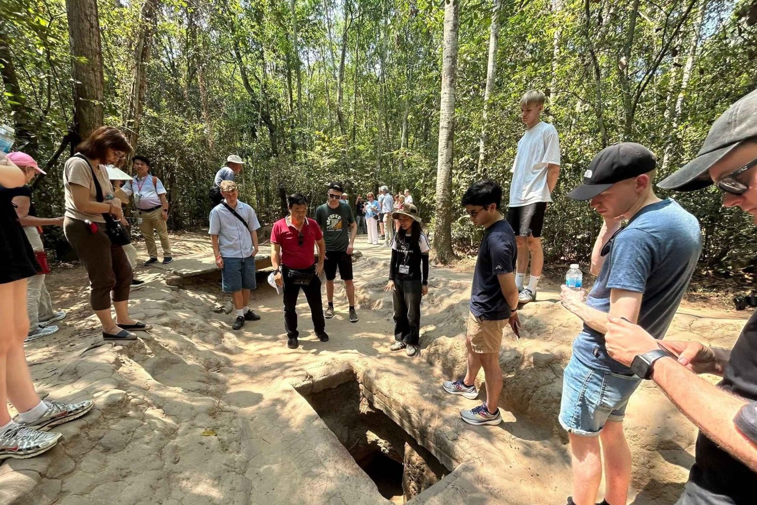 Upptäck Ho Chi Minh-staden och Cu Chi-tunnlarna - heldagsutflykt från Phu My hamn Ge dig ut på en oförglömlig heldagsresa som kombinerar det historiska djupet i Cu Chi-tunnlarna med den livliga energin i Ho Chi Minh-staden. Denna strandutflykt är utformad speciellt för kryssningspassagerare och erbjuder en sömlös upplevelse med transport tur och retur, lokal expertvägledning och en flexibel resväg som är skräddarsydd för att säkerställa att du återvänder till fartyget i tid. Börja ditt äventyr med ett besök i Cu Chi Tunnels, ett stort underjordiskt nätverk som användes av Viet Cong-krigare under Vietnamkriget. Få en inblick i det vietnamesiska folkets motståndskraft och uppfinningsrikedom när du utforskar denna fascinerande plats under kriget. Återvänd till Ho Chi Minh City för en panoramisk sightseeingtur till de mest ikoniska landmärkena, inklusive Självständighetspalatset, Saigons centrala postkontor, Saigons operahus, Nguyen Hue Walking Street och en naturskön biltur längs Saigonfloden. Fånga den kontrasterande charmen i kolonial arkitektur, modernt stadsliv och historisk betydelse - allt under en berikande dag. Efter en dag full av upptäckter kan du njuta av en bekväm och snabb transfer tillbaka till ditt kryssningsfartyg.Includes