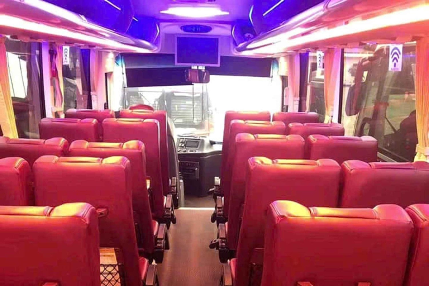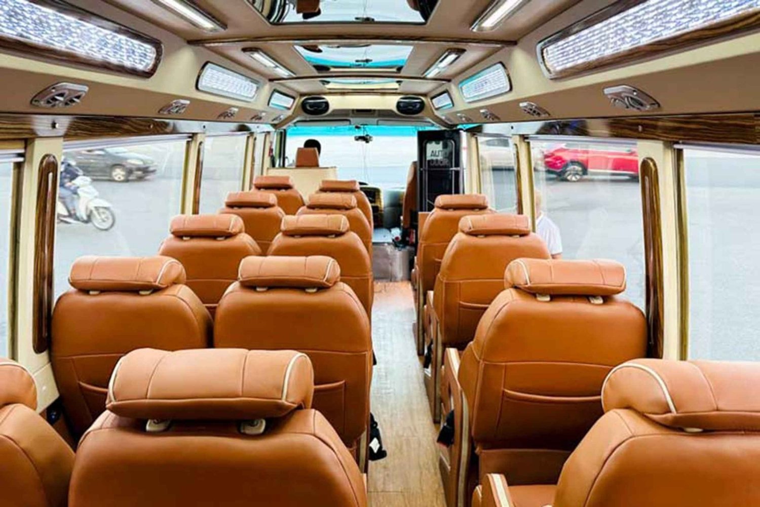 Res enkelt och bekvämt mellan två av norra Vietnams vackraste destinationer – Ninh Binh och Halongbukten. Vår limousinebuss erbjuder en förstklassig reseupplevelse med moderna fordon utformade för komfort, säkerhet och bekvämlighet. Resan tar dig genom det vackra landskapet i Röda flodens delta, fridfulla landsbygden och frodiga risfält, vilket gör resan i sig till en del av äventyret. Med rymliga lädersäten, luftkonditionering, gratis flaskvatten och gratis Wi-Fi ombord kan du koppla av och njuta av resan i fullständig komfort. Dagliga transfer finns tillgängliga i båda riktningarna (Ninh Binh ↔ Halong Bay), med bekväma upphämtnings- och avlämningsplatser vid hotell i centrala områden. Våra professionella och vänliga chaufförer garanterar en säker och smidig resa, medan vårt välplanerade schema gör det enkelt att ansluta till din kryssning i Halong Bay eller din vistelse i Ninh Binh. Oavsett om du är på väg för att utforska de magiska kalkstensklipporna i Halong Bay eller de fridfulla landskapen i Tam Coc och Trang An i Ninh Binh, är denna limousinebuss det perfekta valet för en stressfri och bekväm resa.Includes