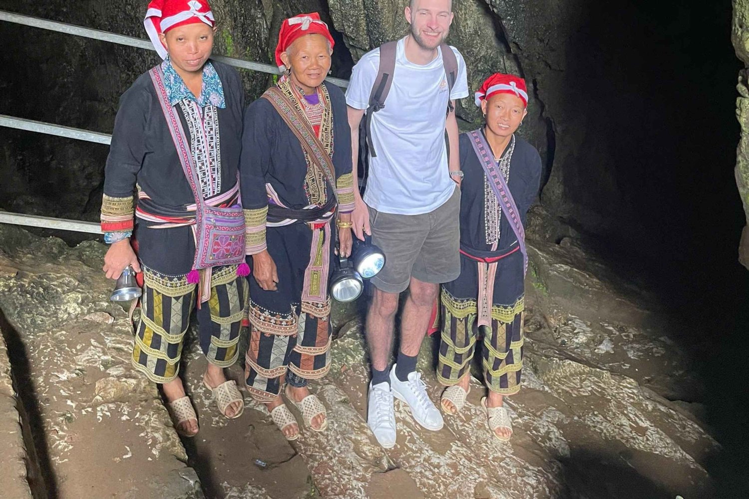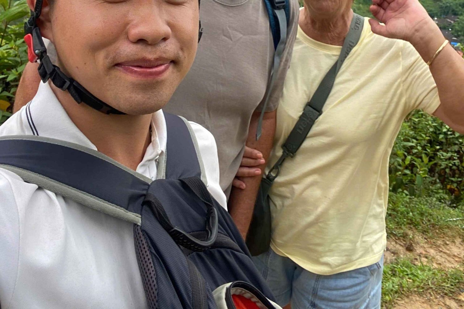 Häng med på vår halvdagsmotorcykeltur i Sapa och utforska det bästa av Sapas natur och kultur på bara några timmar! Rutt: Sa Pa – Cat Cat – Y Linh Ho – San 2 – Lao Chai – Ta Van – Thon Ly – Hang Da – Nui Sa Xeng – Sa Pa. Resan börjar i staden Sa Pa och går vidare till byn Cat Cat, hem till det svarta Hmong-folket. Tillbringa cirka 40 minuter med att utforska den här charmiga byn med sina traditionella trähus, gamla franska vattenkraftsruiner och lokalt hantverk som återspeglar ett djupt kulturarv. Fortsätt din resa genom Y Linh Ho, San 2, Lao Chai och Ta Van, där du kommer att vara omgiven av hisnande risterrasser och fridfulla dalar – några av de vackraste landskapen i norra Vietnam. Stanna till vid Hang Da-byn, en dold utsiktspunkt med utsikt över hela Muong Hoa-dalen – en perfekt plats för panoramabilder av Sapas majestätiska landskap. Sista stoppet är berget Nui Sa Xeng, där du kan beundra staden Sapa, Ta Phin-dalen och till och med berget Fansipan på avstånd. Den här halvdagsturen erbjuder en underbar blandning av lokal kultur, bergsäventyr och fantastiska vyer – perfekt för dig som vill se det riktiga Sapa på kort tid.Includes